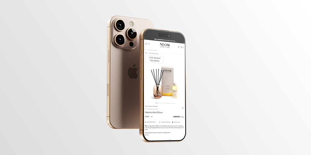 As a multi-award winning market leader in holistic health, NEOM Wellbeing migrated international D2C sites to Shopify 2.0, delivering a mobile-first experience optimised for speed.